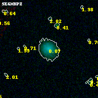Object #5073 x,y = (3736, 1620) RA, Dec = (02:57:06.000, -23:27:19.44) = (44.27500, -23.45540) BPZ = 0.069 [0.031--1.528] type = 6.30 (Sbc_B10 - Scd_B10) chisq2 = 0.00 ODDS = 0.19 z_cluster = 0.505