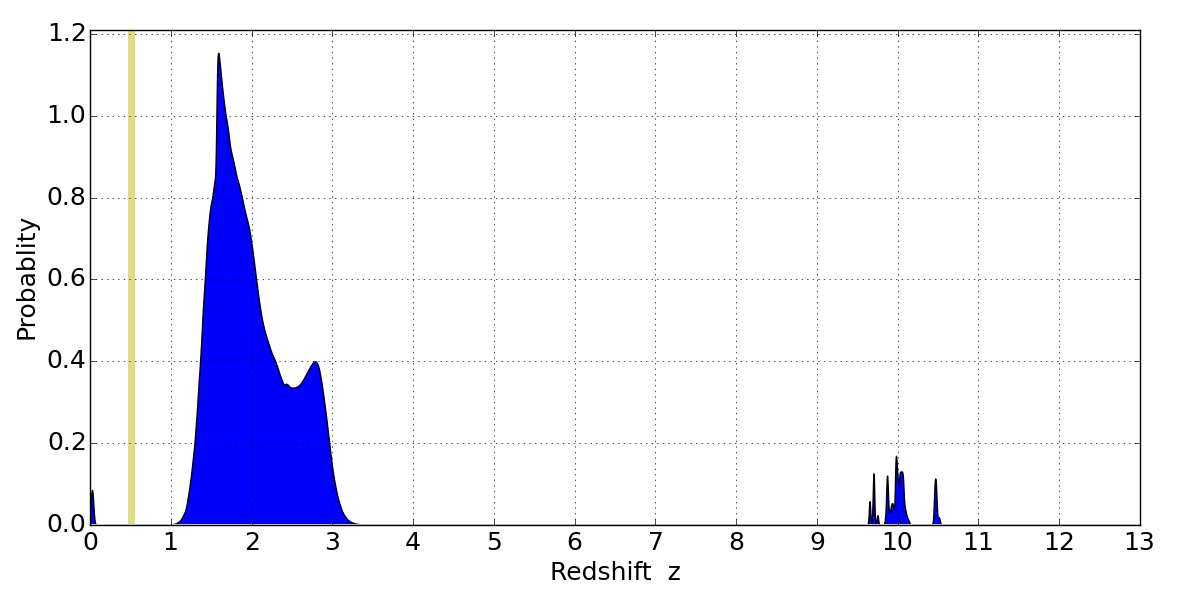 Best viewed in a wide browser window (1200 pixels or more). Download SED & P(z) plots to view larger versions.