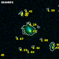 Object #5242 x,y = (3848, 1497) RA, Dec = (02:57:05.520, -23:27:27.00) = (44.27300, -23.45750) BPZ = 0.230 [0.180--1.240] type = 2.70 (Ell5_A_0 - Ell6_A_0) chisq2 = 0.00 ODDS = 0.56 z_cluster = 0.505