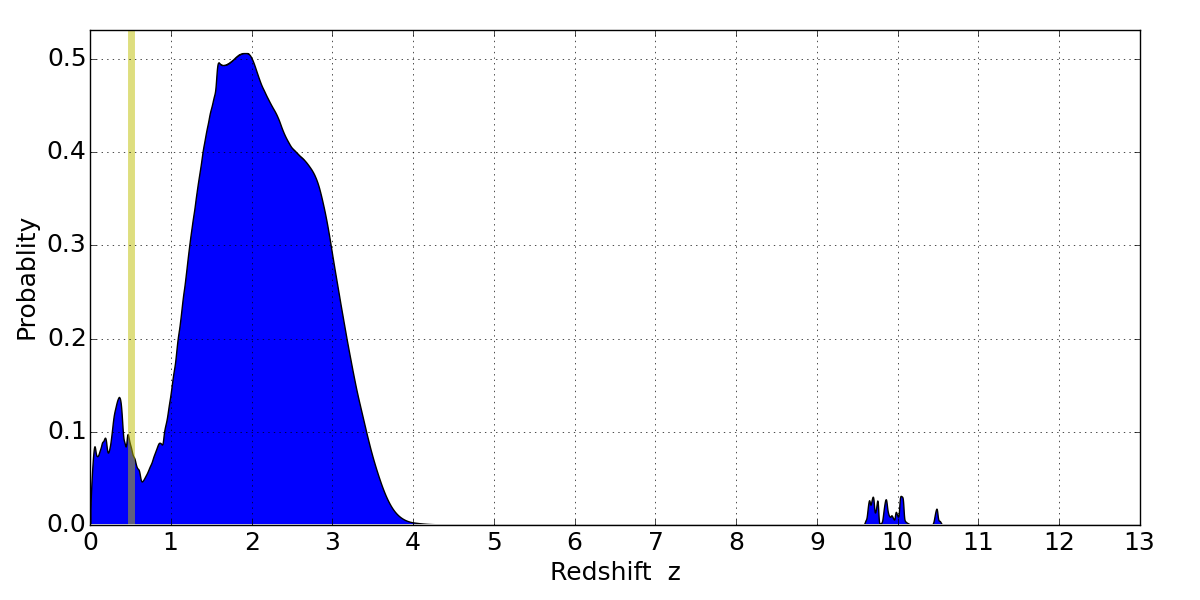 Best viewed in a wide browser window (1200 pixels or more). Download SED & P(z) plots to view larger versions.