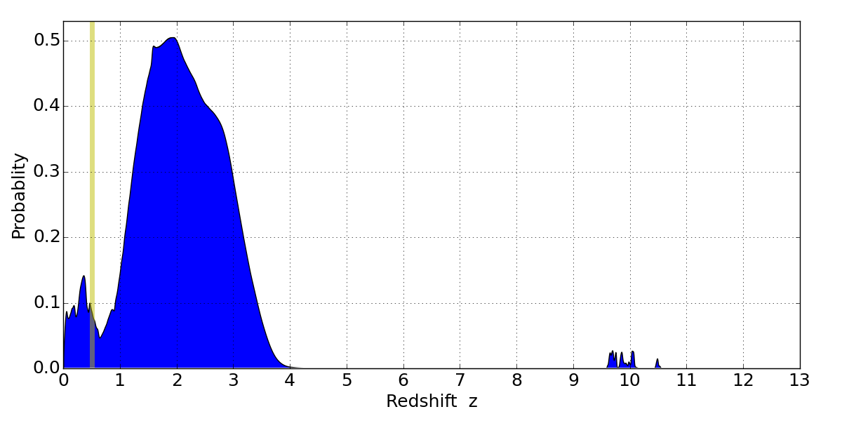 Best viewed in a wide browser window (1200 pixels or more). Download SED & P(z) plots to view larger versions.
