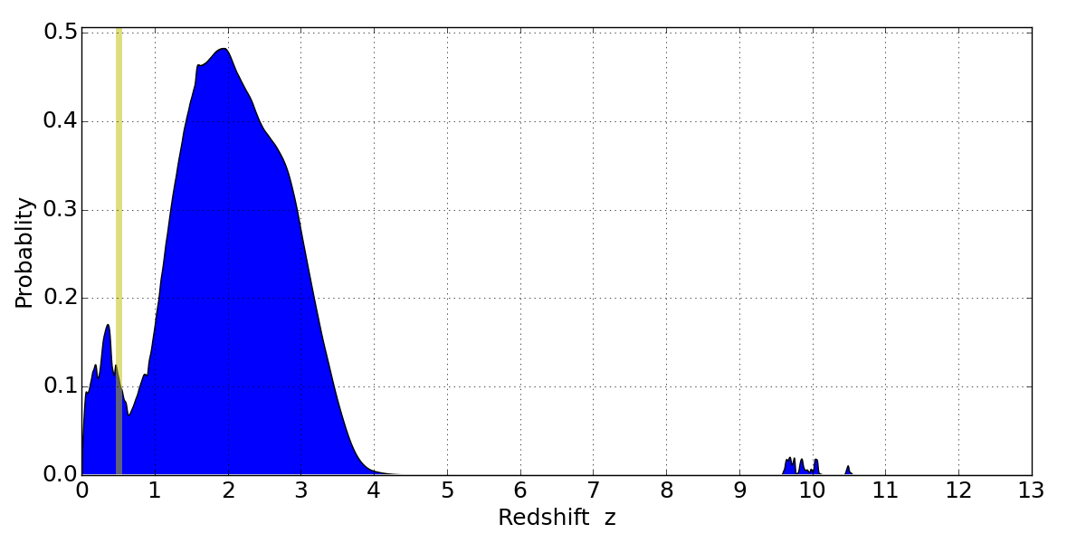 Best viewed in a wide browser window (1200 pixels or more). Download SED & P(z) plots to view larger versions.