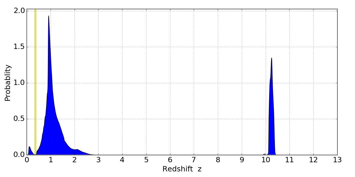 Black segments are analyzed here. Roll mouse over color images to view segments. Best viewed in a wide browser window (1200 pixels or more). Download SED & P(z) plots to view larger versions.