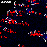 Black segments are analyzed here. Roll mouse over color images to view segments. Best viewed in a wide browser window (1200 pixels or more). Download SED & P(z) plots to view larger versions.