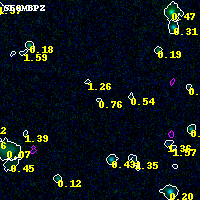 Object #1537 x,y = (1414, 3599) RA, Dec = (19:17:10.104, -33:30:19.80) = (289.29210, -33.50550) BPZ = 0.763 [0.184--5.381] type = 7.00 (Scd_B10) chisq2 = 0.00 ODDS = 0.07 z_cluster = 0.540