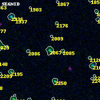 Object #2067 x,y = (1423, 3377) RA, Dec = (19:17:10.056, -33:30:33.12) = (289.29190, -33.50920) BPZ = 0.205 [0.162--1.173] type = 3.00 (Ell5_A_0) chisq2 = 0.00 ODDS = 0.61 z_cluster = 0.540