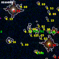 Object #4757 x,y = (3602, 2280) RA, Dec = (19:16:59.592, -33:31:38.64) = (289.24830, -33.52740) BPZ = 1.133 [1.083--1.187] type = 10.10 (SB3_B10 - SB11_A_0_l) chisq2 = 0.68 ODDS = 0.98 z_cluster = 0.540