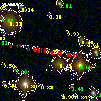 Object #4910 x,y = (2046, 2213) RA, Dec = (19:17:07.056, -33:31:42.96) = (289.27940, -33.52860) BPZ = 0.087 [0.031--2.592] type = 10.00 (SB3_B10) chisq2 = 1.74 ODDS = 0.39 z_cluster = 0.540
