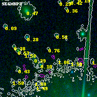 Object #6483 x,y = (1037, 1529) RA, Dec = (19:17:11.904, -33:32:24.00) = (289.29960, -33.54000) BPZ = 0.757 [0.273--5.733] type = 3.00 (Ell5_A_0) chisq2 = 0.03 ODDS = 0.09 z_cluster = 0.540