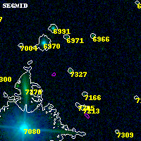 Object #7327 x,y = (3352, 1289) RA, Dec = (19:17:00.792, -33:32:38.40) = (289.25330, -33.54400) BPZ = 0.295 [0.187--3.609] type = 3.00 (Ell5_A_0) chisq2 = 0.00 ODDS = 0.27 z_cluster = 0.540