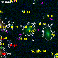 Object #1144 x,y = (2388, 3287) RA, Dec = (19:17:03.024, -33:30:08.28) = (289.26260, -33.50230) BPZ = 0.669 [0.571--0.727] type = 5.80 (Sbc_B10 - ES0_B10) chisq2 = 0.00 ODDS = 0.84 z_cluster = 0.540