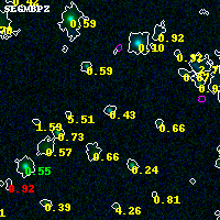 Object #1248 x,y = (2660, 3214) RA, Dec = (19:17:01.704, -33:30:12.96) = (289.25710, -33.50360) BPZ = 0.429 [0.104--0.542] type = 8.30 (SB1_B10 - SB2_B10) chisq2 = 0.00 ODDS = 0.46 z_cluster = 0.540