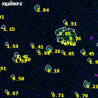 Object #1379 x,y = (3692, 3169) RA, Dec = (19:16:56.760, -33:30:15.48) = (289.23650, -33.50430) BPZ = 0.261 [0.184--3.029] type = 8.40 (SB1_B10 - SB2_B10) chisq2 = 0.00 ODDS = 0.43 z_cluster = 0.540