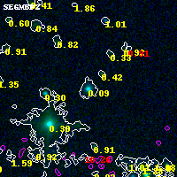 Object #2704 x,y = (3449, 2638) RA, Dec = (19:16:57.936, -33:30:47.52) = (289.24140, -33.51320) BPZ = 0.090 [0.023--0.415] type = 9.00 (SB2_B10) chisq2 = 0.03 ODDS = 0.42 z_cluster = 0.540