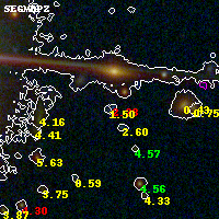 Object #3995 x,y = (804, 2159) RA, Dec = (19:17:10.632, -33:31:16.32) = (289.29430, -33.52120) BPZ = 1.499 [1.174--2.406] type = 11.00 (SB11_A_0_l) chisq2 = 0.88 ODDS = 0.48 z_cluster = 0.540