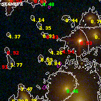 Object #4375 x,y = (1643, 2014) RA, Dec = (19:17:06.600, -33:31:24.96) = (289.27750, -33.52360) BPZ = 4.258 [3.608--4.539] type = 8.70 (SB2_B10 - SB1_B10) chisq2 = 0.31 ODDS = 0.82 z_cluster = 0.540