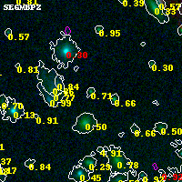 Object #5396 x,y = (883, 1607) RA, Dec = (19:17:10.248, -33:31:49.08) = (289.29270, -33.53030) BPZ = 0.713 [0.595--1.295] type = 5.20 (ES0_B10 - Sbc_B10) chisq2 = 0.00 ODDS = 0.45 z_cluster = 0.540