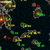 Object #5545 x,y = (1869, 1537) RA, Dec = (19:17:05.520, -33:31:53.40) = (289.27300, -33.53150) BPZ = 0.992 [0.813--1.119] type = 8.90 (SB2_B10 - SB1_B10) chisq2 = 0.89 ODDS = 0.74 z_cluster = 0.540