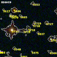 Object #5718 x,y = (1484, 1445) RA, Dec = (19:17:07.368, -33:31:58.80) = (289.28070, -33.53300) BPZ = 0.438 [0.114--0.665] type = 9.60 (SB3_B10 - SB2_B10) chisq2 = 0.32 ODDS = 0.34 z_cluster = 0.540