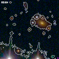 Object #5953 x,y = (3042, 1392) RA, Dec = (19:16:59.880, -33:32:02.04) = (289.24950, -33.53390) BPZ = 3.486 [3.450--3.545] type = 10.10 (SB3_B10 - SB11_A_0_l) chisq2 = 1.81 ODDS = 0.99 z_cluster = 0.540