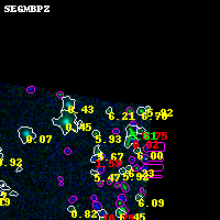 Object #640 x,y = (3856, 3485) RA, Dec = (19:16:55.968, -33:29:56.40) = (289.23320, -33.49900) BPZ = 6.214 [5.809--8.916] type = 9.00 (SB2_B10) chisq2 = 0.00 ODDS = 0.38 z_cluster = 0.540