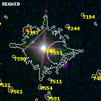 Object #7253 x,y = (1912, 786) RA, Dec = (19:17:05.304, -33:32:38.40) = (289.27210, -33.54400) BPZ = 0.529 [0.471--0.702] type = 7.80 (SB1_B10 - Scd_B10) chisq2 = 0.16 ODDS = 0.62 z_cluster = 0.540