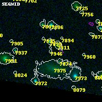Object #7946 x,y = (877, 548) RA, Dec = (19:17:10.272, -33:32:52.80) = (289.29280, -33.54800) BPZ = 0.811 [0.381--1.752] type = 7.60 (SB1_B10 - Scd_B10) chisq2 = 0.02 ODDS = 0.19 z_cluster = 0.540