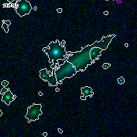 Object #908 x,y = (3398, 3309) RA, Dec = (19:16:58.176, -33:30:07.20) = (289.24240, -33.50200) BPZ = 0.430 [0.096--0.528] type = 7.20 (Scd_B10 - SB1_B10) chisq2 = 0.00 ODDS = 0.56 z_cluster = 0.540