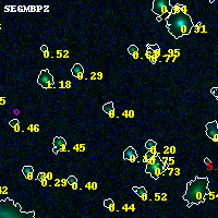 Object #985 x,y = (3267, 3320) RA, Dec = (19:16:58.800, -33:30:06.48) = (289.24500, -33.50180) BPZ = 0.404 [0.125--3.201] type = 8.40 (SB1_B10 - SB2_B10) chisq2 = 0.00 ODDS = 0.31 z_cluster = 0.540