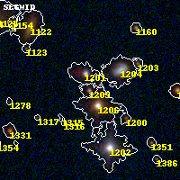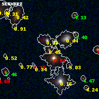 Object #1205 x,y = (3110, 2094) RA, Dec = (19:16:59.544, -33:31:19.92) = (289.24810, -33.52220) BPZ = 0.447 [0.306--0.576] type = 7.90 (SB1_B10 - Scd_B10) chisq2 = 0.45 ODDS = 0.69 z_cluster = 0.540