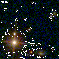 Object #140 x,y = (2010, 3083) RA, Dec = (19:17:04.824, -33:30:20.88) = (289.27010, -33.50580) BPZ = 0.304 [0.274--0.330] type = 9.70 (SB3_B10 - SB2_B10) chisq2 = 1.80 ODDS = 0.99 z_cluster = 0.540