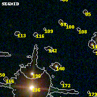 Object #142 x,y = (1994, 3120) RA, Dec = (19:17:04.920, -33:30:18.36) = (289.27050, -33.50510) BPZ = 0.912 [0.524--5.652] type = 8.20 (SB1_B10 - SB2_B10) chisq2 = 1.55 ODDS = 0.24 z_cluster = 0.540