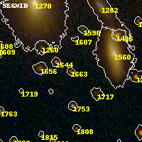 Object #1663 x,y = (1752, 1809) RA, Dec = (19:17:06.072, -33:31:37.20) = (289.27530, -33.52700) BPZ = 4.542 [4.432--4.658] type = 8.10 (SB1_B10 - SB2_B10) chisq2 = 1.44 ODDS = 1.00 z_cluster = 0.540