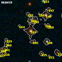 Object #167 x,y = (1493, 3008) RA, Dec = (19:17:07.320, -33:30:25.20) = (289.28050, -33.50700) BPZ = 0.159 [0.117--0.180] type = 4.00 (Ell4_A_0) chisq2 = 1.08 ODDS = 0.98 z_cluster = 0.540