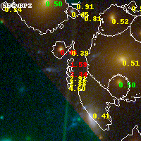 Object #1978 x,y = (1081, 1605) RA, Dec = (19:17:09.288, -33:31:49.44) = (289.28870, -33.53040) BPZ = 2.343 [1.782--3.001] type = 9.00 (SB2_B10) chisq2 = 3.31 ODDS = 0.29 z_cluster = 0.540