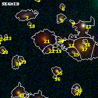 Object #22 x,y = (2103, 3407) RA, Dec = (19:17:04.392, -33:30:01.44) = (289.26830, -33.50040) BPZ = 0.816 [0.348--0.910] type = 7.00 (Scd_B10) chisq2 = 0.48 ODDS = 0.79 z_cluster = 0.540