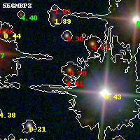 Object #2477 x,y = (2522, 1111) RA, Dec = (19:17:02.376, -33:32:18.96) = (289.25990, -33.53860) BPZ = 0.701 [0.664--5.165] type = 4.00 (Ell4_A_0) chisq2 = 1.70 ODDS = 0.93 z_cluster = 0.540