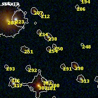 Object #254 x,y = (2258, 2888) RA, Dec = (19:17:03.648, -33:30:32.40) = (289.26520, -33.50900) BPZ = 4.171 [0.434--4.413] type = 8.90 (SB2_B10 - SB1_B10) chisq2 = 1.11 ODDS = 0.62 z_cluster = 0.540