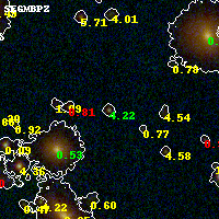 Object #266 x,y = (2084, 2878) RA, Dec = (19:17:04.488, -33:30:33.12) = (289.26870, -33.50920) BPZ = 4.220 [4.064--4.353] type = 8.80 (SB2_B10 - SB1_B10) chisq2 = 0.16 ODDS = 0.99 z_cluster = 0.540