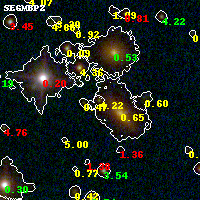 Object #328 x,y = (2022, 2794) RA, Dec = (19:17:04.776, -33:30:38.16) = (289.26990, -33.51060) BPZ = 4.218 [0.266--4.404] type = 8.10 (SB1_B10 - SB2_B10) chisq2 = 0.20 ODDS = 0.74 z_cluster = 0.540