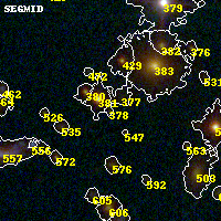 Object #378 x,y = (1777, 2620) RA, Dec = (19:17:05.952, -33:30:48.60) = (289.27480, -33.51350) BPZ = 0.769 [0.279--4.816] type = 7.70 (SB1_B10 - Scd_B10) chisq2 = 0.81 ODDS = 0.13 z_cluster = 0.540