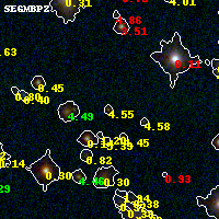Object #500 x,y = (2536, 2629) RA, Dec = (19:17:02.304, -33:30:47.88) = (289.25960, -33.51330) BPZ = 4.547 [4.328--5.138] type = 9.00 (SB2_B10) chisq2 = 0.33 ODDS = 0.85 z_cluster = 0.540