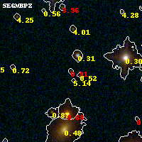 Object #515 x,y = (1520, 2626) RA, Dec = (19:17:07.176, -33:30:48.24) = (289.27990, -33.51340) BPZ = 0.905 [0.423--1.164] type = 8.40 (SB1_B10 - SB2_B10) chisq2 = 1.25 ODDS = 0.41 z_cluster = 0.540