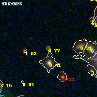 Object #532 x,y = (971, 2609) RA, Dec = (19:17:09.816, -33:30:48.96) = (289.29090, -33.51360) BPZ = 0.773 [0.283--4.169] type = 7.90 (SB1_B10 - Scd_B10) chisq2 = 0.93 ODDS = 0.36 z_cluster = 0.540
