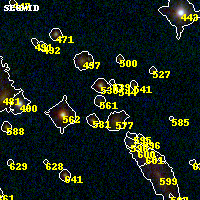 Object #561 x,y = (2516, 2587) RA, Dec = (19:17:02.400, -33:30:50.40) = (289.26000, -33.51400) BPZ = 0.818 [0.447--1.130] type = 8.70 (SB2_B10 - SB1_B10) chisq2 = 0.41 ODDS = 0.31 z_cluster = 0.540