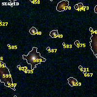 Object #587 x,y = (2670, 2563) RA, Dec = (19:17:01.656, -33:30:51.84) = (289.25690, -33.51440) BPZ = 4.727 [4.092--5.315] type = 9.70 (SB3_B10 - SB2_B10) chisq2 = 0.83 ODDS = 0.56 z_cluster = 0.540