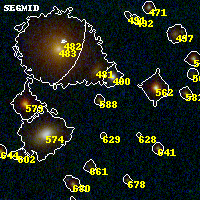 Object #588 x,y = (2423, 2561) RA, Dec = (19:17:02.856, -33:30:52.20) = (289.26190, -33.51450) BPZ = 4.287 [4.132--4.432] type = 8.50 (SB2_B10 - SB1_B10) chisq2 = 0.78 ODDS = 0.99 z_cluster = 0.540