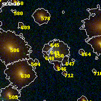 Object #649 x,y = (2042, 2494) RA, Dec = (19:17:04.680, -33:30:56.16) = (289.26950, -33.51560) BPZ = 0.125 [0.076--0.214] type = 9.40 (SB2_B10 - SB3_B10) chisq2 = 0.17 ODDS = 0.69 z_cluster = 0.540