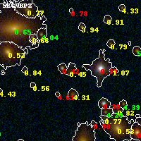 Object #669 x,y = (2228, 2481) RA, Dec = (19:17:03.792, -33:30:56.88) = (289.26580, -33.51580) BPZ = 0.447 [0.200--4.033] type = 7.60 (SB1_B10 - Scd_B10) chisq2 = 0.23 ODDS = 0.23 z_cluster = 0.540