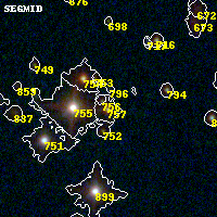 Object #757 x,y = (2817, 2379) RA, Dec = (19:17:00.960, -33:31:03.00) = (289.25400, -33.51750) BPZ = 0.446 [0.343--4.498] type = 4.00 (Ell4_A_0) chisq2 = 1.14 ODDS = 0.90 z_cluster = 0.540
